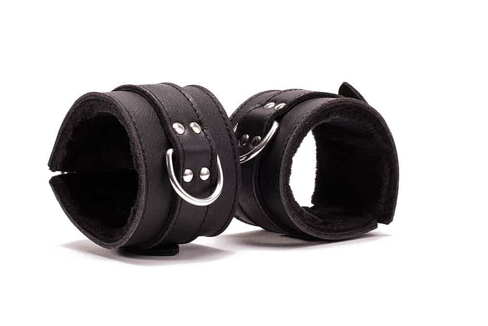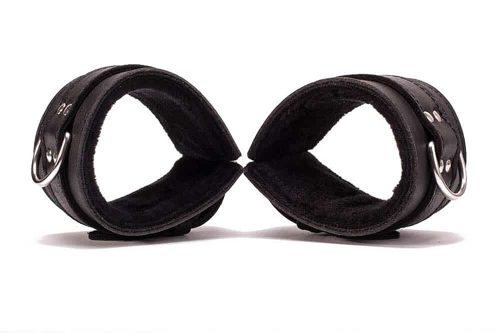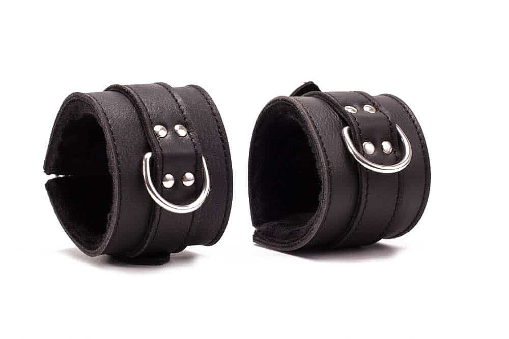The handcuffs are made of solid black leather, which is lined and softly padded on the inside, so they provide high comfort even when worn for a long time. Hemmed edges and precise stitching ensure long life and a pleasant feeling on the skin.