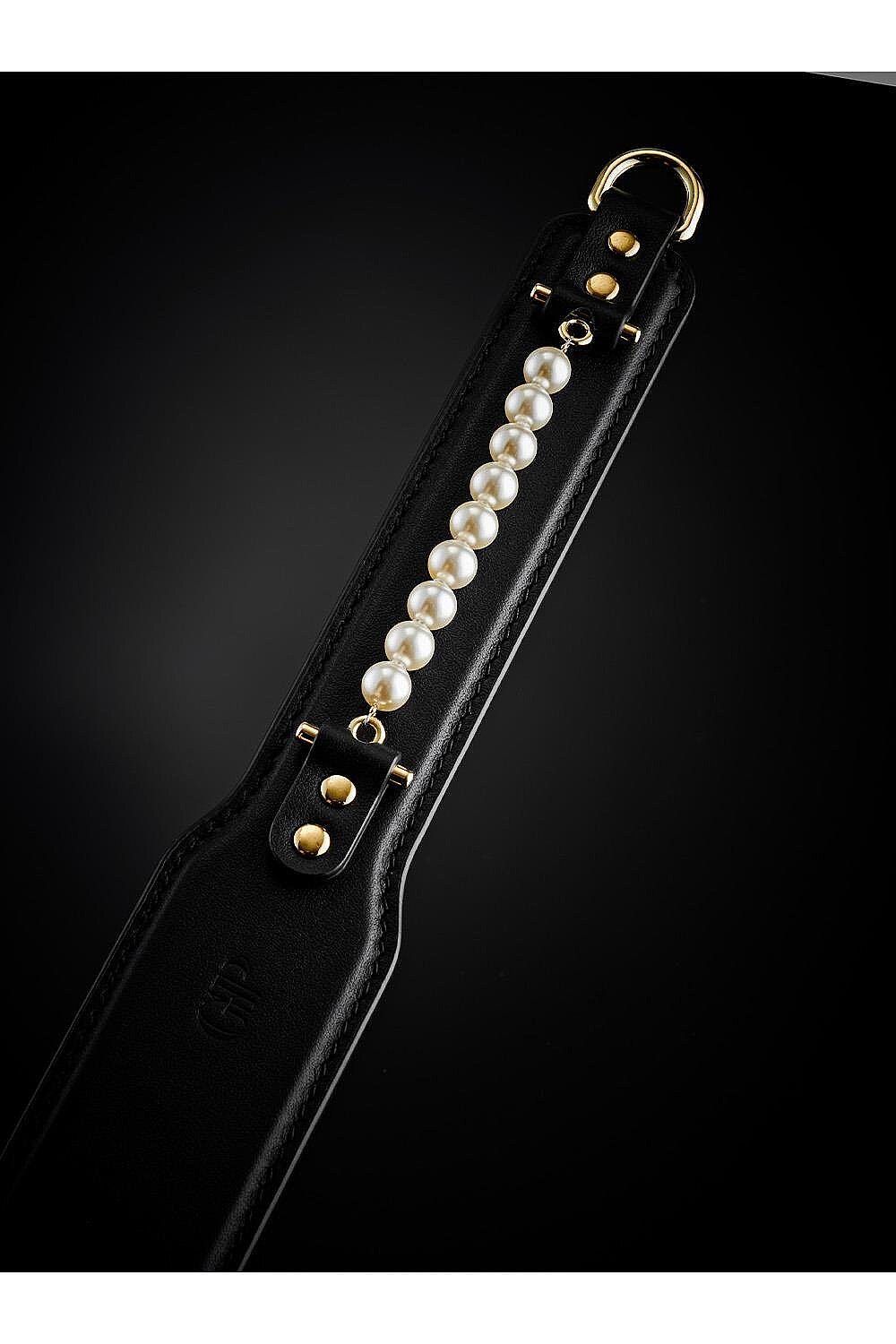 Guilty Pleasure Prestige Pearl Paddle blends sophistication with performance. Smooth black vegan leather caresses the skin while delivering silky, satisfying impact. A pearl-accented handle turns every swing into a statement of luxury. The balanced build shifts effortlessly from playful taps to firmer strikes—always controlled, always safe. Its flexible head guides precision and lets you dial in intensity on the fly. Gold-toned hardware gleams like jewelry, elevating your scene. A lightweight, ergonomic grip rests comfortably in hand for longer sessions. When the heat fades, slip it into the included storage bag—ready for your next seductive command.