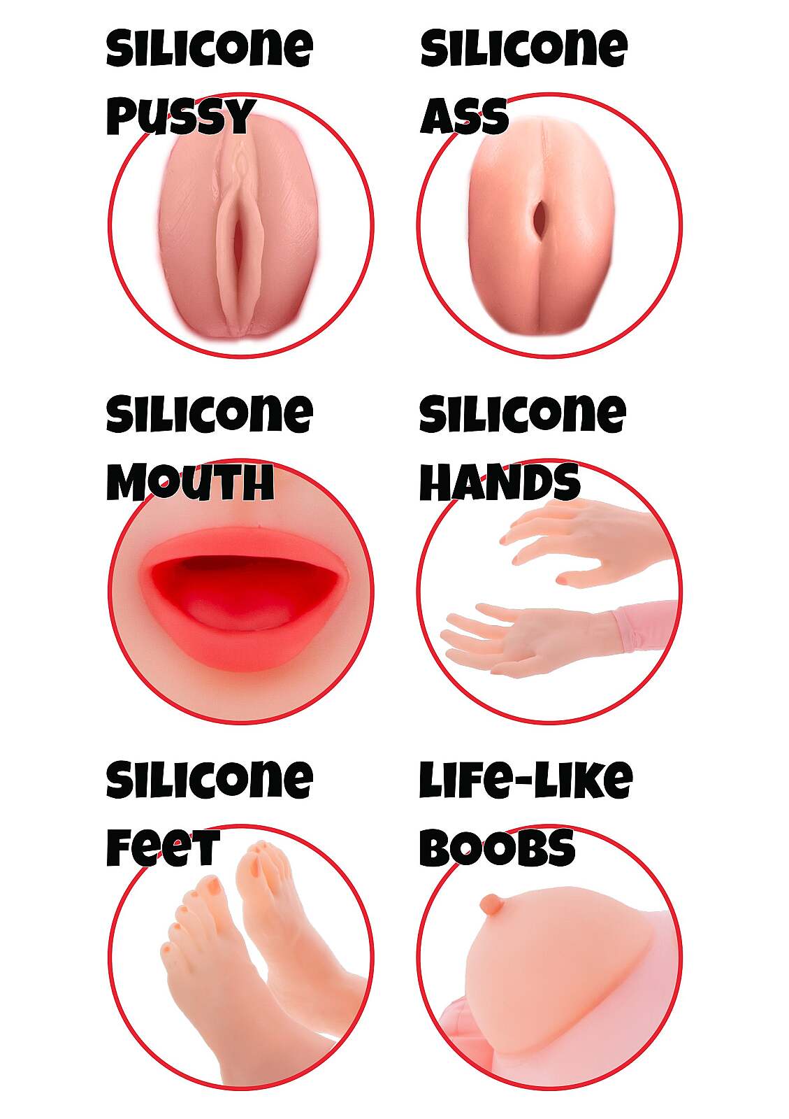- Details: realistic face, firm breasts, lifelike toes