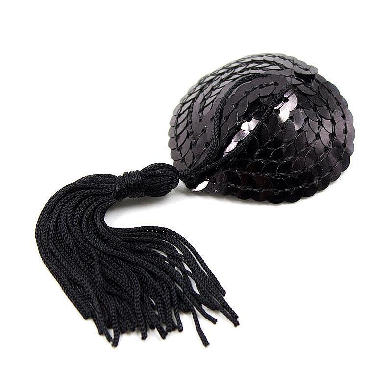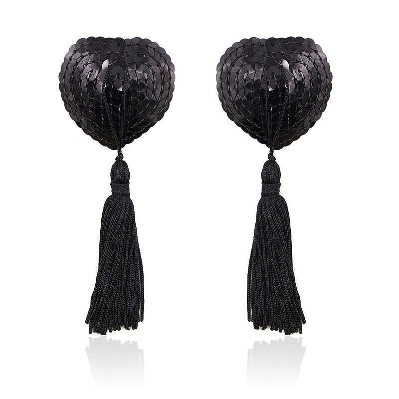 LATETOBED BDSM LINE Self-Adhesive Heart Sequin Nipple Cover with Tassel (Black) brings playful erotic styling to the spotlight. These heart-shaped nipple covers combine a dark, tempting look with practical wearability thanks to their self-adhesive design. The black sequin finish catches the light with every movement, while the matching tassels add a teasing, provocative touch that makes lingerie looks, costumes, and intimate outfits even more striking. Their one-size design makes them easy to wear, creating an eye-catching accessory for sensual evenings, themed parties, performances, or daring fashion moments.