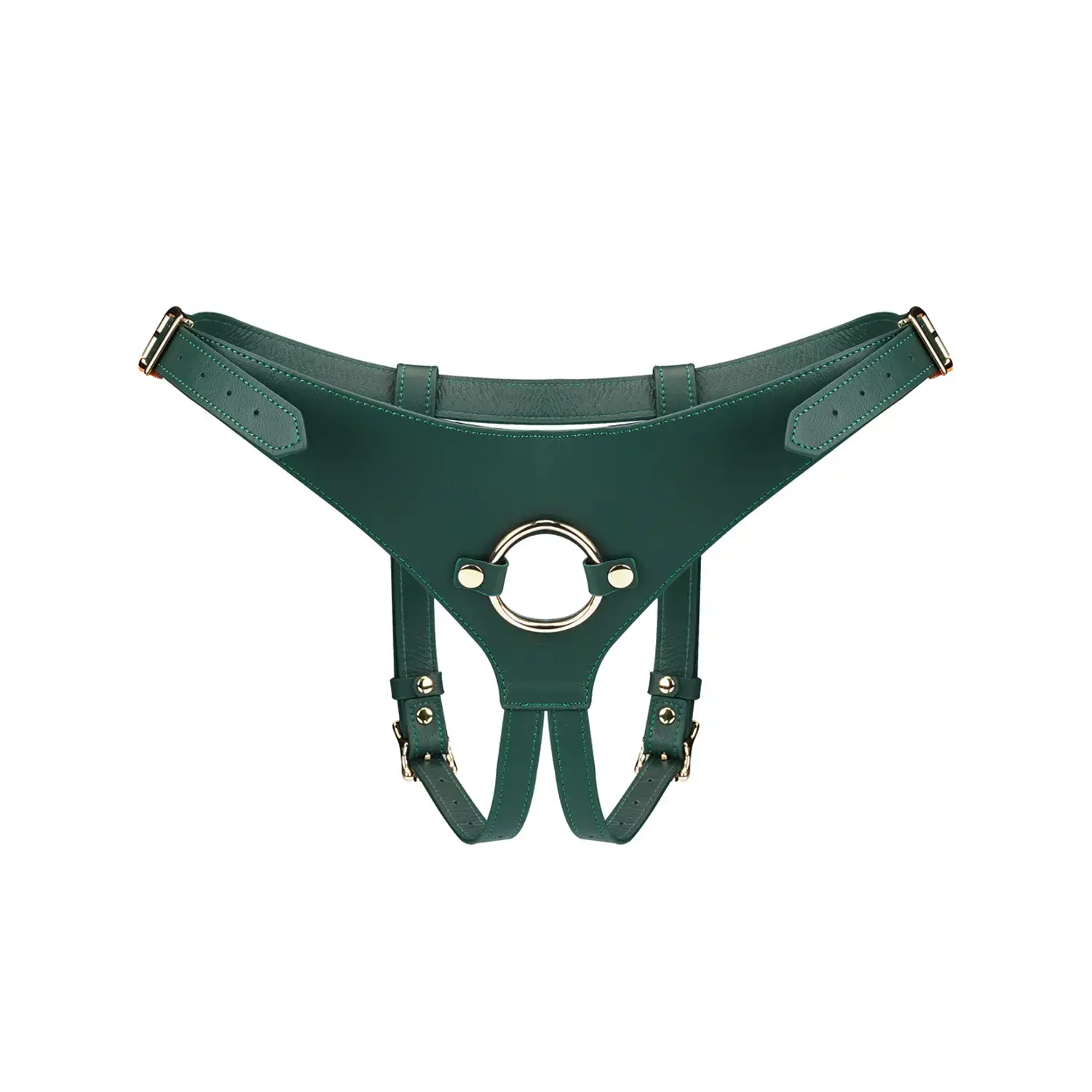 Strap in for a new level of pleasure. This luxurious green leather harness turns every movement into a thrilling, stylish adventure.