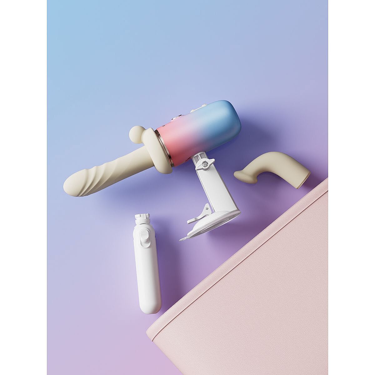 - Attachments included: straight dildo attachment, curved G-spot attachment, clitoral base