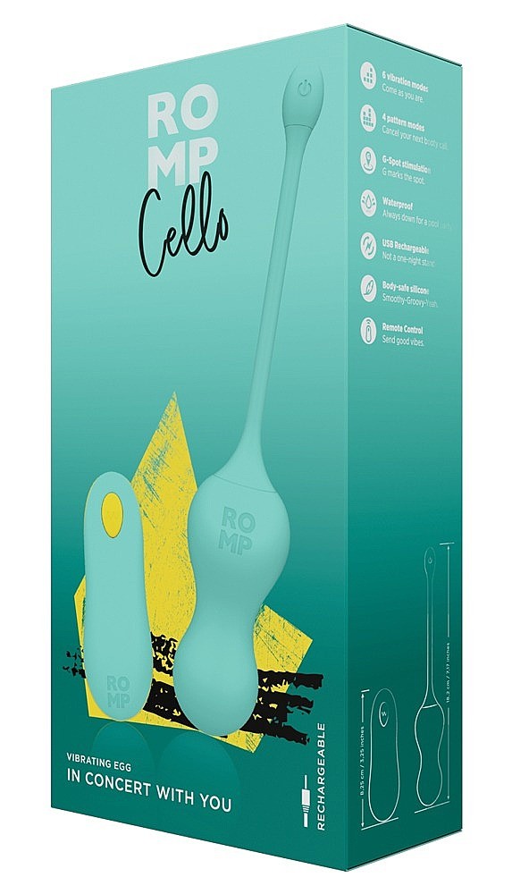 Enjoy the vibrations with this Romp Cello vibrating egg! Romp Cello is a remote-controlled vibrating toy with a soft silicone surface. Its shape will pamper your sensitive intimate parts and thanks to USB charging it will always be ready for fun. You can choose from up to 4 vibration modes and 6 vibration intensity levels. And finally, thanks to the waterproofness (IPX7), you will be able to play even in the shower or bath.