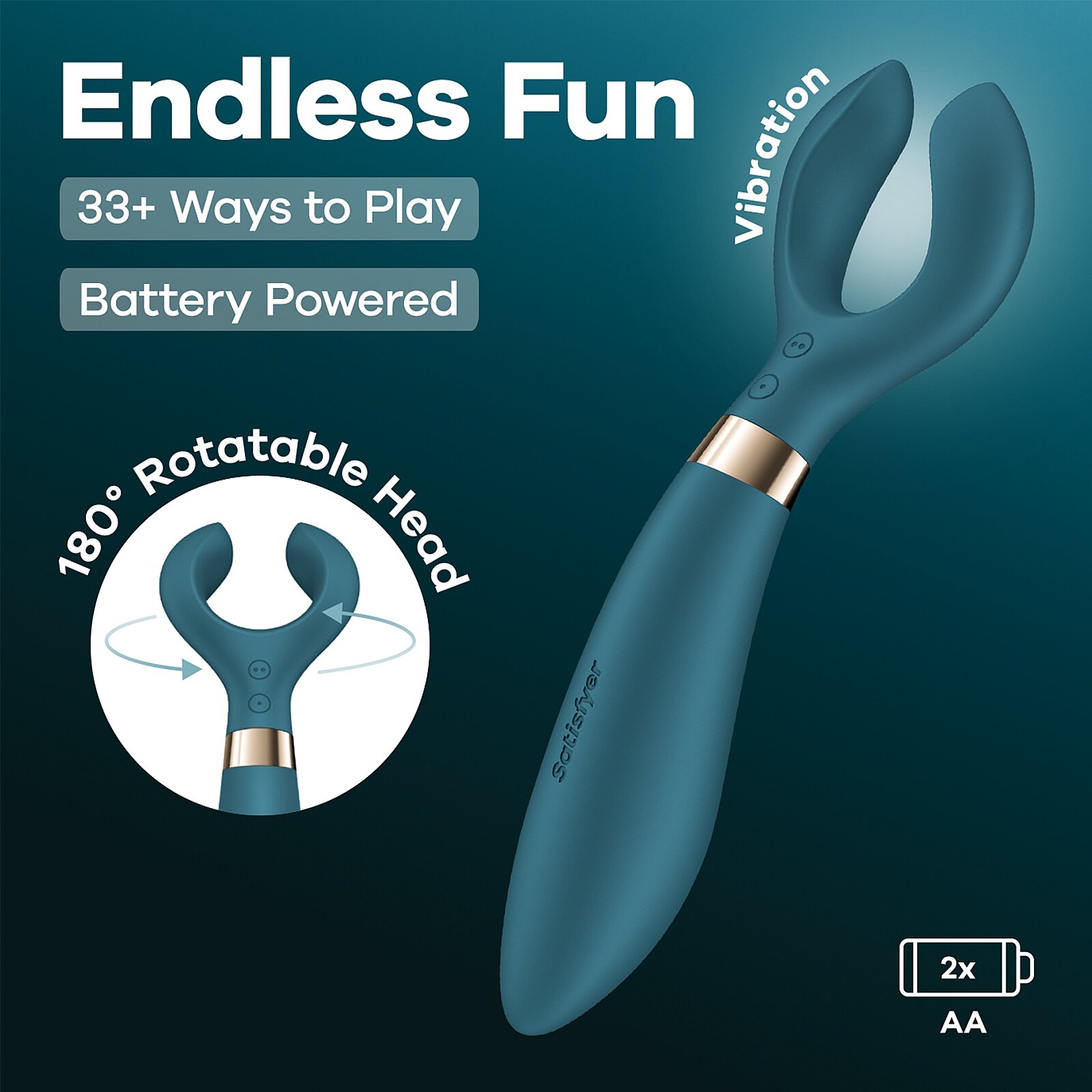 With Satisfyer and the Endless Fun Battery Series, you’ll unlock over 33 ways to play. Three powerful motors deliver 100 vibration combinations to delight the clitoris, G-spot, and glans. A 180° rotating head adapts to every position so your pleasure never has limits. Velvety, body-safe silicone glides smoothly and cleans with ease. Waterproof IPX7 design invites steamy sessions in the shower or bath. Powered by two AA batteries, it’s travel-ready and always on standby for spontaneous fun. Flexible arms cuddle nipples, labia, or the base of the penis, turning every touch into electric excitement. An ergonomic shape fits your hand beautifully, while intuitive buttons keep the rhythm just right.