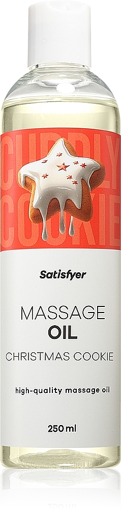 Satisfyer Massage Oil 250 ml (Christmas Cookie) seduces with the aroma of freshly baked cookies, creating a snug, sensual mood for playful massage. Its velvety texture glides effortlessly so each stroke lasts longer, deeper, more intense. A gentle warming effect melts tension and amplifies every caress. Nourishing plant oils pamper the skin, leaving it supple, smooth, and alluringly soft. It absorbs quickly and leaves no residue—only pure pleasure. The neutral, gentle formula is versatile, perfect for tender rituals or bolder explorations, giving your fantasies free rein. Use a small amount, feel the effect unfold instantly, and add more drops as you desire for a long, deliciously warm session.
