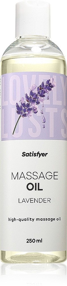 Satisfyer Massage Oil 250 ml (Lavender) seductively glides over the skin to deliver long-lasting care. Its silky texture absorbs slowly so you can enjoy prolonged, fluid strokes. The non-greasy finish leaves skin smooth, never sticky. Gentle lavender eases body and mind—perfect for partner massages, tender touch, and intimate rituals. A nourishing blend of plant oils (sunflower, soybean, jojoba) softens and conditions while tocopherol (vitamin E) supports skin suppleness. With its mild, neutral formula, simply add more whenever you wish—pour a few drops into your palms or directly onto the body and let your imagination flow. Satisfyer blends relaxation and erotic play into an irresistibly fragrant moment.