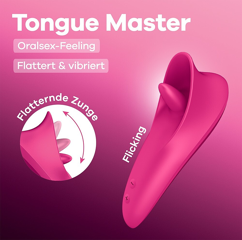 Satisfyer Tongue Master (Pink) features a flexible silicone tongue that mimics oral play and targets your clitoris and labia with pinpoint delight. The super‑soft, body‑safe silicone transmits powerful vibrations with velvety intensity. Enjoy 9 licking modes and 9 vibration programs ranging from feather‑light flutters to electrifying intensity. Two intuitive buttons let you switch and fine‑tune the pace instantly. The extended ergonomic handle gives you total control to hit every sweet spot with ease. Keep it discreet with whisper mode, even when things get intense. Thanks to waterproof IPX7 design, it’s bathtub‑ and shower‑ready and easy to clean. USB‑C rechargeable with a lithium‑ion battery means quick power‑ups whenever desire strikes.