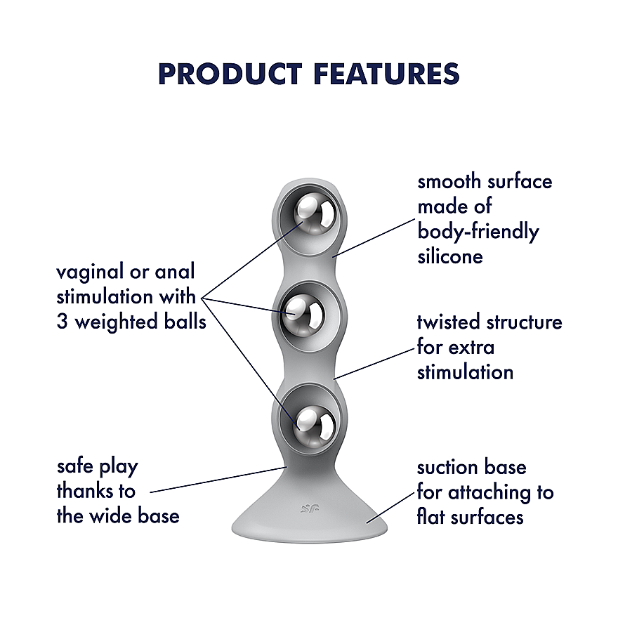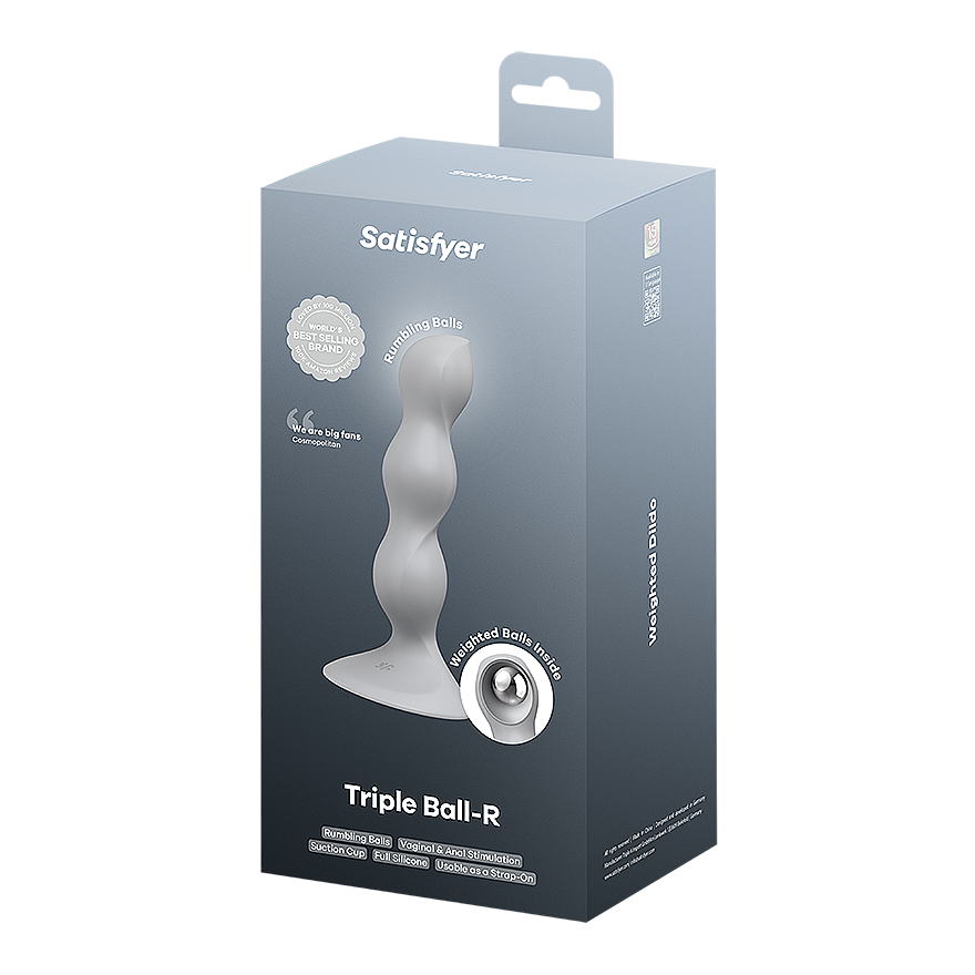 Satisfyer Triple Ball-R (Grey) embraces natural, body-led stimulation: three internal weighted balls react to every thrust, delivering raw, authentic, and exciting sensations. With its smooth, body-friendly silicone, Satisfyer Triple Ball-R (Grey) glides comfortably for vaginal or anal insertion and invites playful, non-vibrating thrills. The rounded suction-cup base anchors firmly to flat surfaces for carefree hands‑free fun and is harness-compatible for strap‑on adventures that ignite partner play. Its unisex design welcomes every body and every fantasy. Waterproof to IPX7, it’s ready for steamy showers and indulgent baths. Easy cleaning makes it a reliable companion for frequent, intense, and unapologetically sensual use. Take the lead with Satisfyer Triple Ball-R (Grey) while the balls amplify your inner rhythm—no motor, just pure kinetic ecstasy.