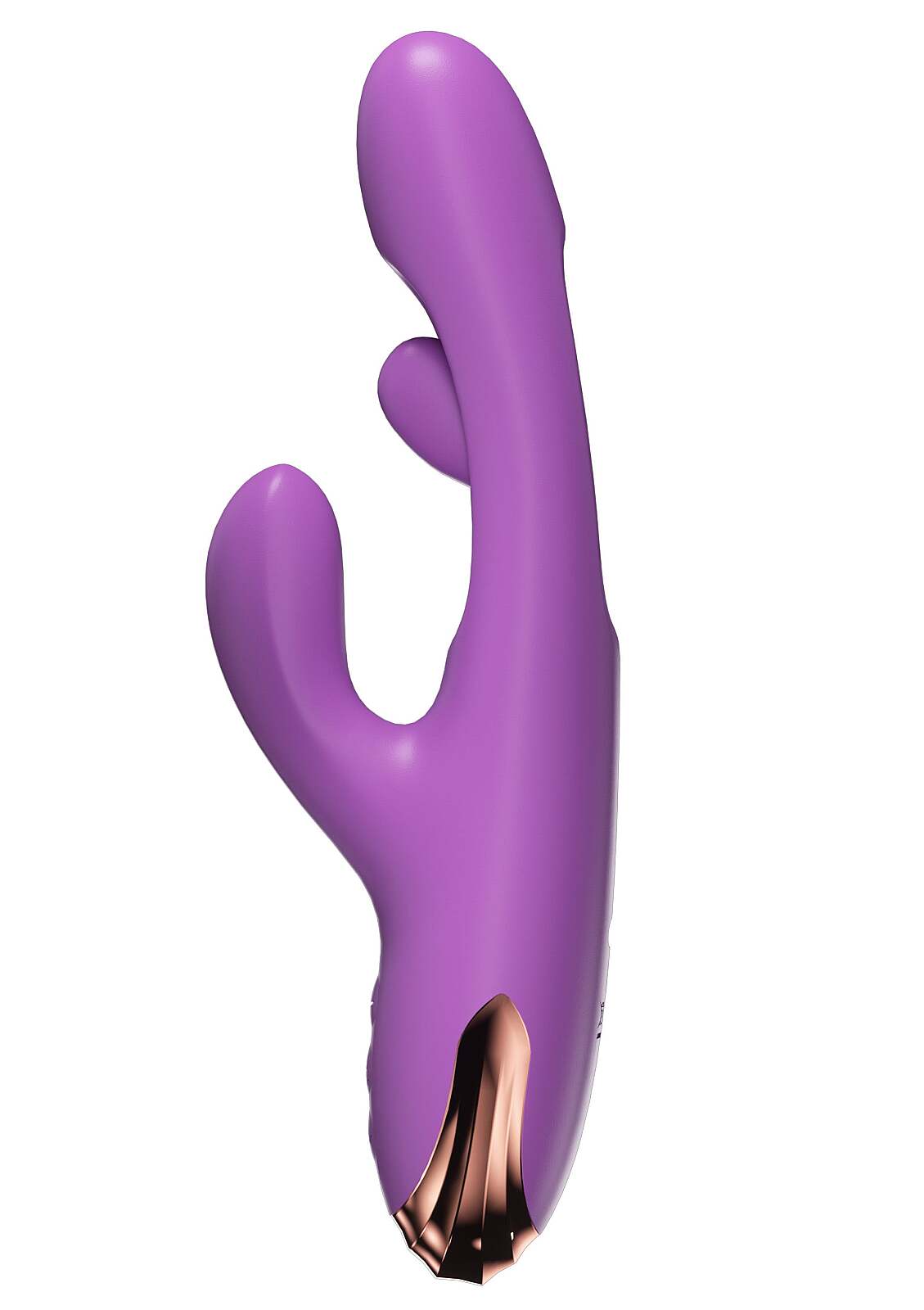 Let pleasure point the way! This elegant rabbit mimics a skilled finger while its clitoral arm sends shivers of delight. Dressed in purple with rose-gold accents, it teases the eyes as much as your senses.