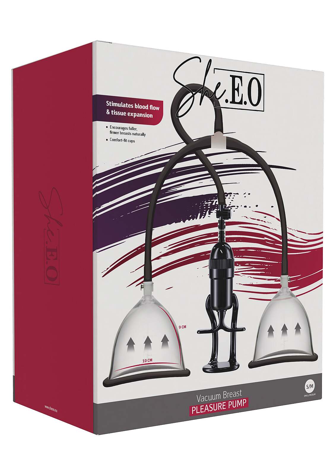 She.E.O – Vacuum Breast Pleasure Pump Medium is engineered to softly yet powerfully boost breast sensitivity. Large cups (10 cm diameter, 9 cm height) embrace your curves while steady suction enhances blood flow and touch response. A smart vacuum valve on each cup locks in suction even after removing the hose and hand pump—your pleasure stays uninterrupted. When you wish, the quick-release valve instantly eases pressure for total control. The hand pump lets you dial in intensity with playful precision. A flexible silicone hose adapts to your position, and durable ABS cups keep everything secure. The sleek black finish adds a sophisticated edge. With an overall length of 76 cm and a weight of 594 g, the set feels robust, stable, and ready for extended exploration.