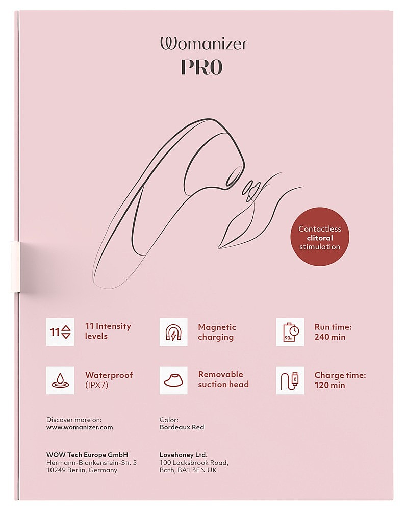 Womanizer Pro (Red) delivers legendary touchless stimulation that surrounds the clitoris with silky air waves for pure, focused pleasure. With 11 Pleasure Air intensities, glide from feather-light teasing to deeply satisfying surges and control every peak. The whisper-quiet motor keeps your secret safe while you revel in quick, multiple orgasms within minutes. Its compact size slips into your hand or purse, and the intuitive controls let you change levels without breaking the spell. Enjoy wet-play freedom thanks to its waterproof build, and keep the fun going with USB rechargeable power. Silky silicone and durable ABS feel great on skin and clean easily.